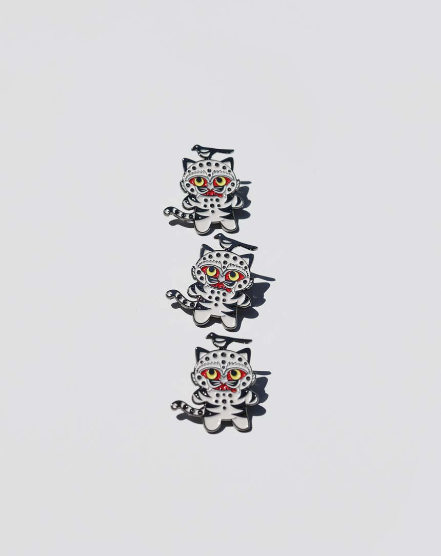 With a white tiger and silver magpie, this design pairs well with clothing, bags, and any accessory.