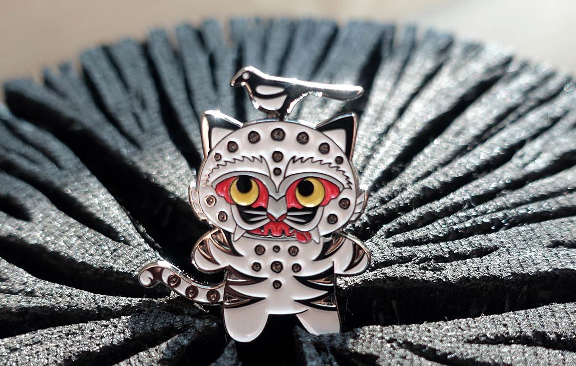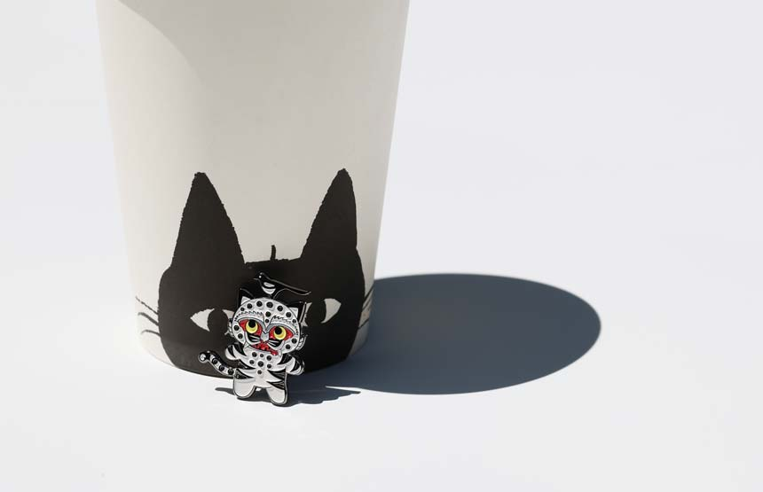 Keep the spirit of the brave and protective tiger from traditional folk paintings close to you with this whimsical Magpie Tiger badge, said to ward off bad energy.